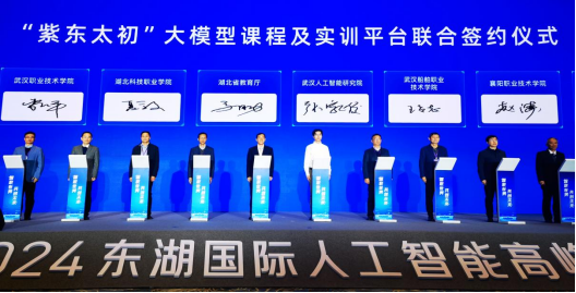 会上,夏学文作“人工智能产教融合共同体 赋能高素质技能人才培养”主题报告,详细介绍了华体网页版_华体(中国)联合湖北大学、科大讯飞等单位组建的湖北省人工智能产教融合共同体,以及共同体在推进高素质技能人才培养方面取得的显著成效。并代表华体网页版_华体(中国)与省教育厅、武汉人工智能研究院等单位共同签订了“紫东太初”大模型课程及实训平台联合协议,标志着华体网页版_华体(中国)在人工智能教育领域迈出了坚实的一步。