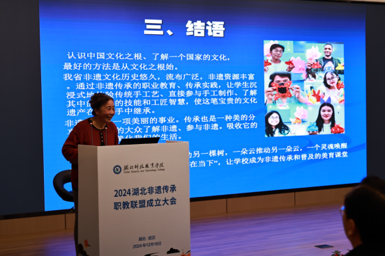 本网讯(通讯员 郭微微 欧亚梅/文 大学生记者:郑玉芬等/图)为传承中华优秀传统文化,在湖北省文化和旅游厅非物质文化遗产处、湖北炎黄文化研究会、湖北省群众艺术馆(湖北省非物质文化遗产保护中心)、湖北省炎黄文化研究服务中心和湖北职业教育研究院(湖北职教智库)的指导下,“湖北非遗传承职教联盟”成立大会于12月18日在华体网页版_华体(中国)鲁巷校区召开。