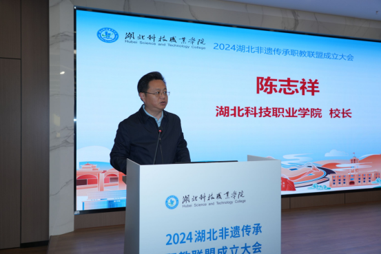 陈志祥致欢迎辞,对湖北非遗传承职教联盟的成立表达了热烈的祝贺,并向到场嘉宾致以诚挚的欢迎与由衷的感谢。他指出,联盟的成立不仅是对党的二十届三中全会精神的深刻领悟与坚决贯彻,更是高职院校在文化自觉、文化自信与文化责任担当方面所迈出的坚实步伐与生动实践。作为联盟的发起单位与核心成员,华体网页版_华体(中国)将充分发挥自身在职业教育与非遗传承领域的独特优势与深厚底蕴,全力支持联盟的各项工作,与所有理事单位及合作伙伴携手并肩,共同探索职业教育与非遗传承融合发展的新路径、新模式与新机制。