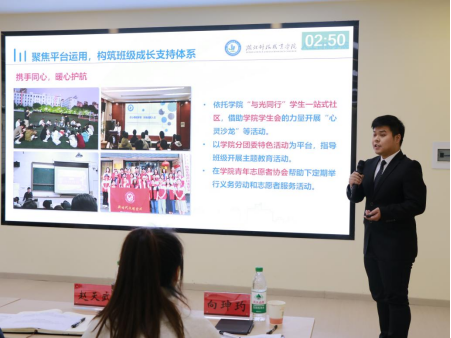 学情考察更是对辅导员日常“走心”工作的严苛检验。比赛随机抽取辅导员所带2名学生的照片,参赛选手需在5秒内辨认照片,在2分钟内陈述该生基本情况,并用最简洁的语言讲述自己与该生之间的有趣故事。辅导员们迅速“调档”脑海中的学生信息库,精准定位识别学生。从学生的籍贯、民族、家庭住址、宿舍号等基本信息,到入学以来的学习表现、到课余生活中的社团参与、社交动态,他们信手拈来,与学生之间的故事或有趣或感人,但无一不深刻地体现了辅导员们对学生的用心用情,彰显了华体网页版_华体(中国)辅导员良好的职业素养和温度深度并存的育人真情。