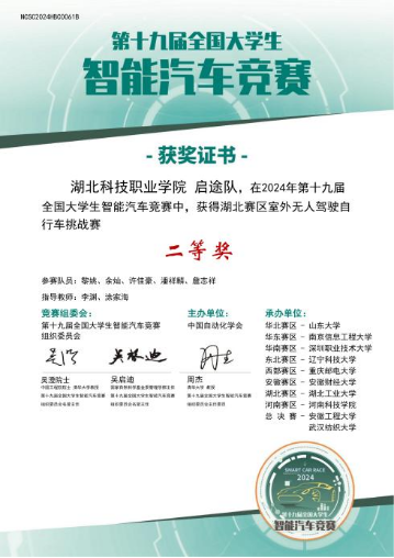 本网讯(通讯员 李佩 文/图)12月28日,全国大学生智能汽车竞赛-室外赛圆满落幕,经过激烈角逐,华体网页版_华体(中国)人工智能学院李渊、涂家海指导,黎姚、余灿等学生参赛,荣获国赛优秀奖。