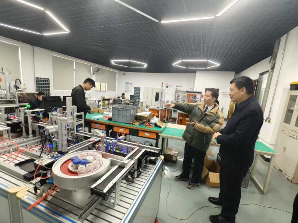 在机电工程学院智能制造技术中心,熊晓泉一行深入了解机械、数控、电气自动化、工业机器人专业学生实训项目,参观汽车、电气实训室及SGAVE项目执行情况和实施效果,并赞赏学生专业技能与团队精神,鼓励备赛学生继续努力,争取在比赛中斩获佳绩。