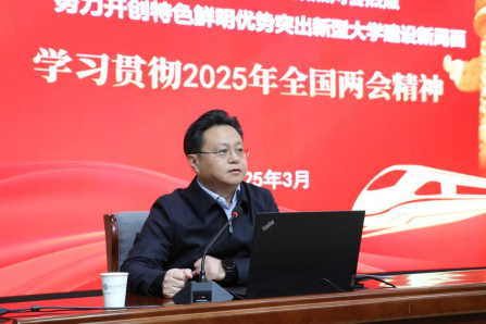 校长陈志祥在题为“把握时代脉搏 聚焦两会热点 努力开创特色鲜明优势突出新型大学建设新局面”的报告中传达了十四届全国人大常委会二次会议、全国政协十四届二次会议主要精神,重点围绕教育改革发展进行了全面而深入的阐述。就如何将全国两会精神落细落实,陈志祥提出基础任务必须全面达标,筑牢发展压舱石;重点任务必须着力突破,打造发展新标杆;各部门必须一体协同,实现发展新成效。