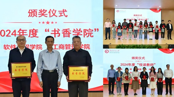 仪式现场揭晓了《2024年度校园阅读报告》,通过进馆量、借阅榜单、数字资源使用情况等数据,呈现师生阅读风貌。在颁奖环节,参会领导分别为获得“读书之星”“悦读教师”及“书香学院”的个人和集体颁发证书及奖品。获奖师生作为榜样为书香校园的建设传递了阅读力量。