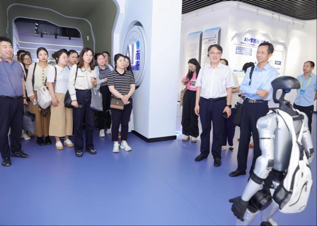 夏学文简要介绍了学校作为湖北省“双高计划”建设院校在人工智能教育领域的积极探索与取得的成果。他指出学校通过牵头成立湖北省人工智能行业产教融合共同体、建设省级《人工智能技术应用》通识课程等举措构建了产教融合发展新格局。目前学校正与广东科学技术职业学院、湖南科技职业学院等兄弟院校共同牵头立项建设国家级人工智能教学资源库,已明确了资源库系统建设、智能化应用升级及国际化战略推广三大核心任务。