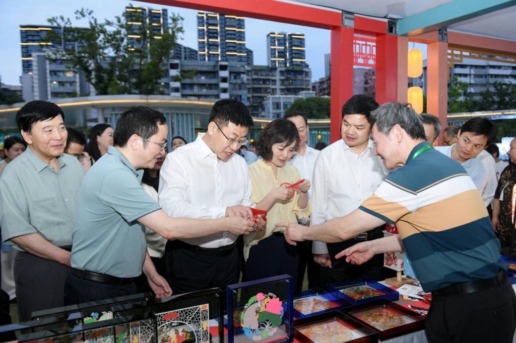 今年是中国非物质文化遗产传承人群研修研习培训计划实施十周年,湖北开放大学作为非遗研培计划核心参与院校,以“非遗焕新”成果展诠释十年耕耘。展会现场,文旅部非遗司副司长李晓松驻足武汉剪纸展区,与非遗代表性传承人沈松柏大师深度交流,对其以宜昌山水为灵感的系列剪纸作品给予高度评价。这组作品以“一纸剪万象”的精妙技艺,将三峡风光、屈原故里等城市符号凝练于方寸之间,展现非遗与地域文化的深度对话。