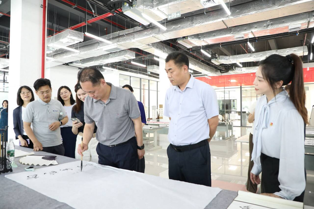王雨寒与师生代表观看并参与了丰富多彩的社团活动,一起体验漆扇制作、品尝茶酒社特调的夏日饮品、观看滑轮社的技巧动作、欣赏大学生艺术团模特队的“运动show”等。丁华涛在“青廉画·清廉与青春同行”第二届廉洁书画展活动现场为同学们题字《向冠军学习》。在互动环节,王雨寒向同学们展示了自己日常健身的小妙招、分享了自己夺冠的心路历程,给同学们传递了勇于奋斗、不畏挫折的精神力量。