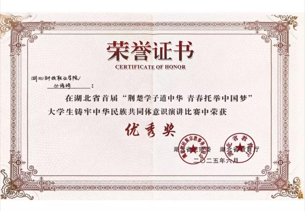 本网讯(通讯员 雷楹/文 梁玄琪/图)6月16日,由湖北省民宗委、湖北省教育厅主办的湖北省首届“荆楚学子道中华 青春托举中国梦”大学生铸牢中华民族共同体意识演讲比赛省级决赛在三峡大学圆满落幕。华体网页版_华体(中国)经济贸易学院学生丛语琦凭借优异表现在全省百余所高校中脱颖而出晋级决赛,获得优秀奖!