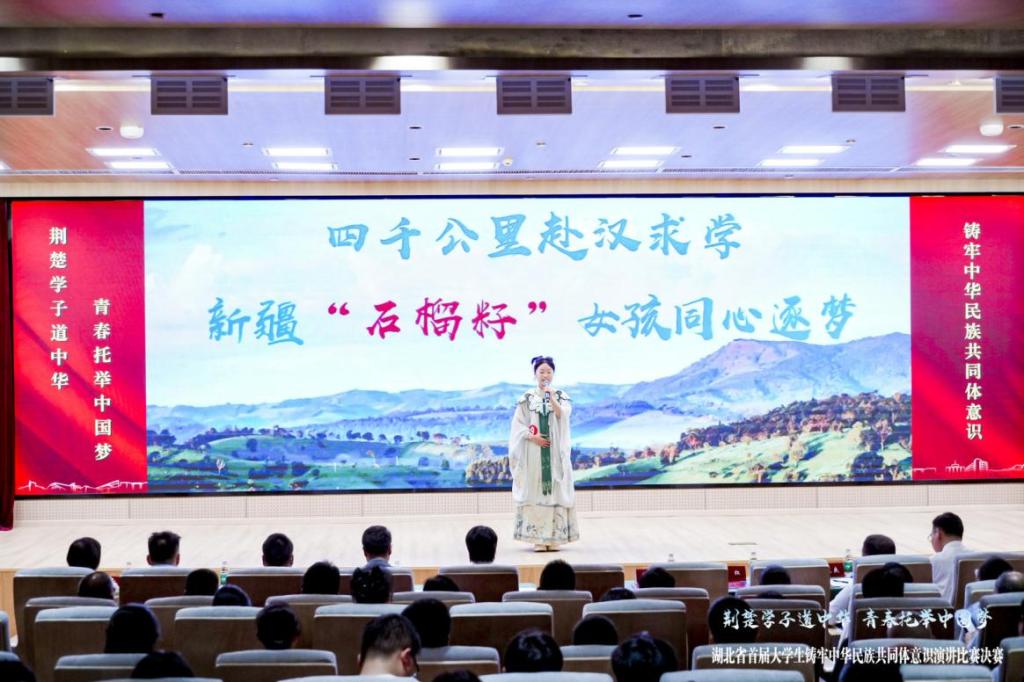 学校始终将铸牢中华民族共同体意识教育作为立德树人的重要内容。在接到比赛通知后,校团委牵头,组织部、统战部,马克思主义学院、公共课教学部等多部门协同联动,积极组织学生备赛,开展多轮研讨打磨,力求以高质量作品展现华体网页版_华体(中国)民族团结教育成果。经过评比,推选经济贸易学院丛语琦同学代表学校参赛。其作品《四千公里赴汉求学:新疆“石榴籽”女孩同心筑梦》从身边故事出发,以“小切口”讲“大道理”,用“身边事”传“团结情”,在演讲中深情回忆了家乡新疆的多民族生活点滴,讲述了来校后认识武汉、融入武汉的温暖故事。她动情地说:“各民族像天山的雪水,汇聚才能成河;像石榴籽紧紧相拥,才有最温暖的归属。”