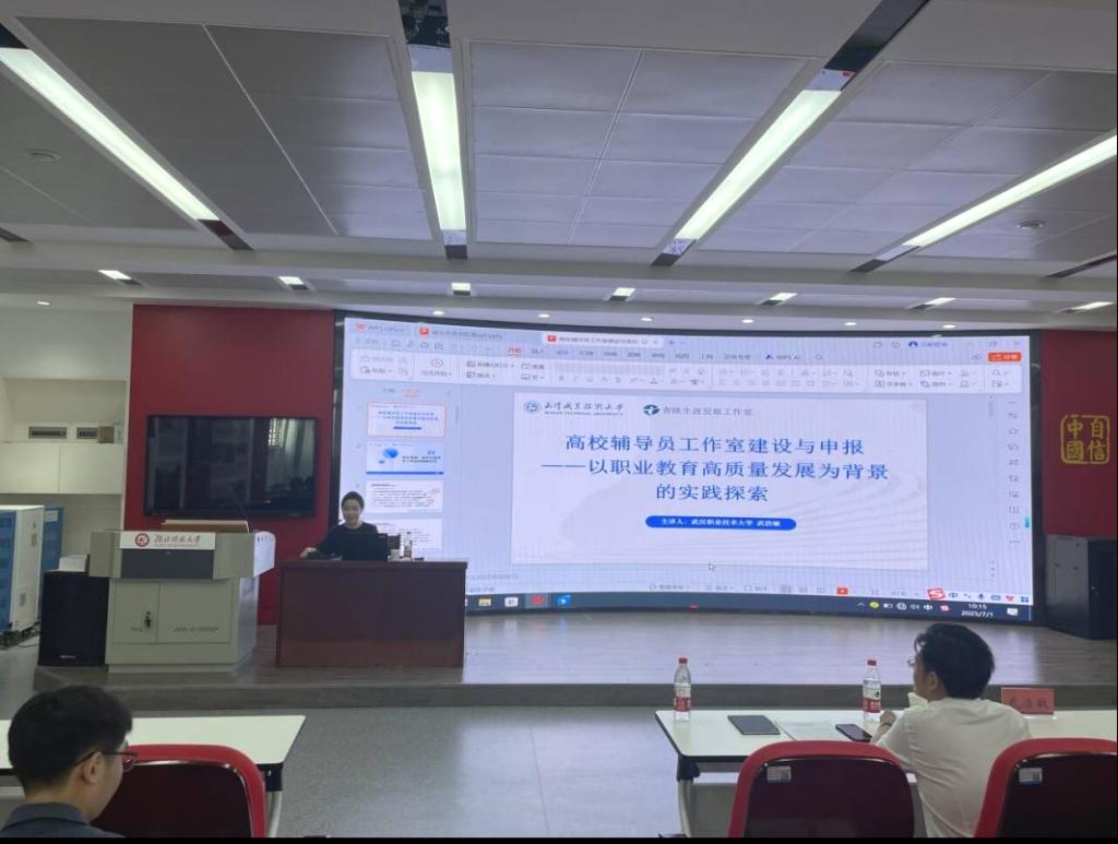 培训会上,针对辅导员们在辅导员工作室建设中存在的亟待解决的共性问题和学习提升需求,学工部聘请了入选教育部2025年度高校辅导员名师工作室的两位主持人——中国地质大学(武汉)熊程和武汉职业技术大学武浩敏,围绕工作室建设开展专题辅导。两位专家结合自身丰富的建设经验与前沿理念,从顶层设计、特色定位、团队培育、品牌赋能等核心维度展开分享,既有对研究型大学工作室“学科+思政”融合路径的剖析,也有对职业院校工作室“产教融合育工匠” 模式的解读。
