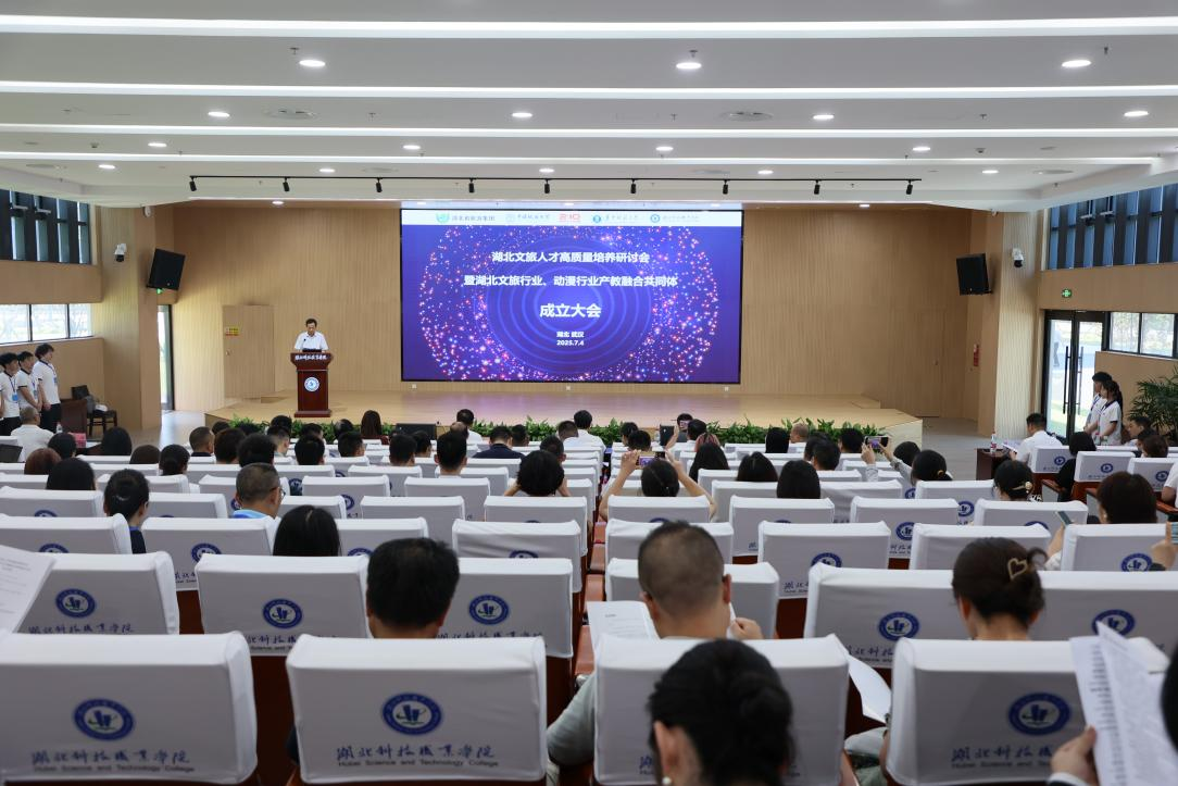 “湖北文旅行业共同体”由湖北省旅游集团、中国地质大学(武汉)、华体网页版_华体(中国)牵头成立;“湖北动漫行业共同体”由武汉两点十分文化传播有限公司、华中师范大学、华体网页版_华体(中国)牵头成立。会上,来自“政校行企”百余家单位代表参会,共同探讨文旅、动漫人才培养新路径,助力文旅、动漫产业提质升级。