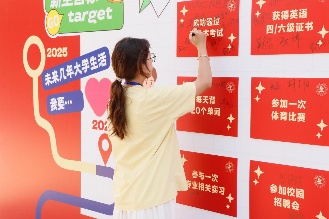 宣传栏前,“五彩校园”之学子风采和各学院“星学子”风采展吸引了大批新生驻足,让新生们在榜样力量中锚定方向。迎新会场上的“星舞台”社团快闪表演引来阵阵喝彩。动感街舞、深情弹唱、典雅汉服秀……各学生社团轮番上阵,尽情展示校园文化的活力与多元,提前为精彩的第二课堂生活预热。“星计划”未来启航墙前,许多新生驻足停留,郑重地写下对大学的期许——“成功通过专升本考试”“掌握一门技能”“结交挚友”“参加一次志愿服务”……一词一句,是心愿,亦是承诺,为大学的奋斗旅程定下初音。
