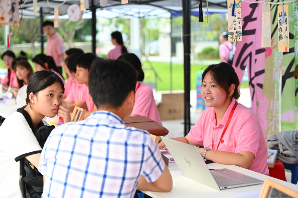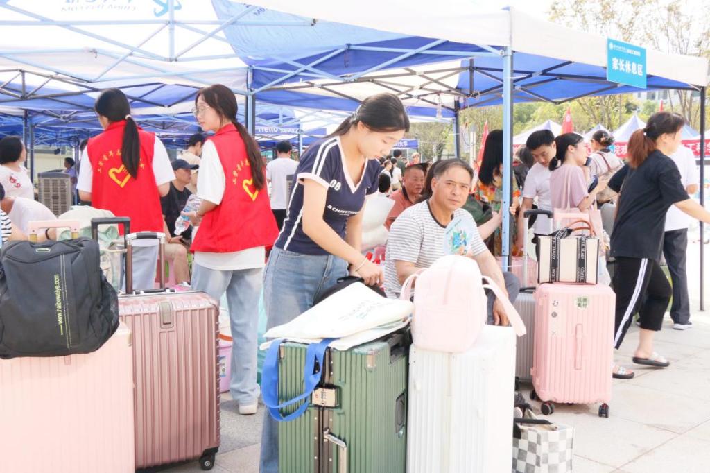 而在“家长休息区”,许多陪同报到的家长也找到了“归属感”。迎新会场不仅提供免费茶饮、纳凉设备与行李寄存服务,更安排各专业负责人面对面与家长交流,围绕学业支持、成长规划和就业前景等话题展开真诚沟通,搭建起家校协同育人的第一座桥梁。