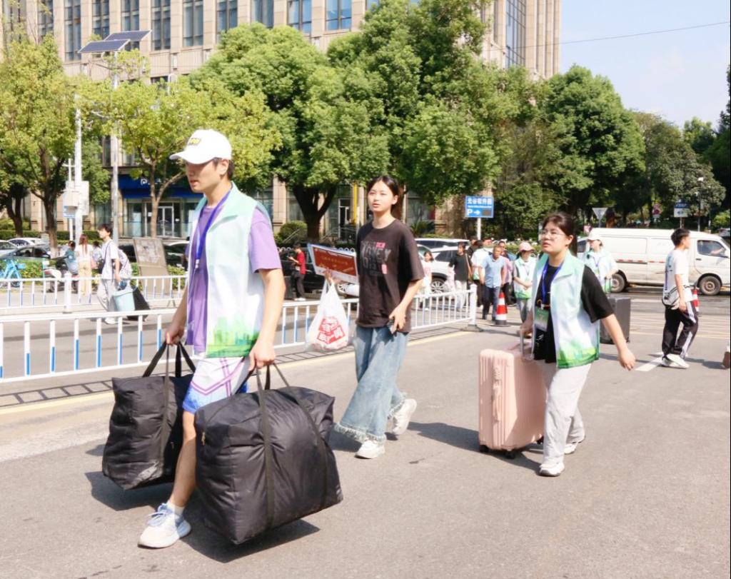 晨曦微露,一群身着“红马甲”和“绿马甲”的学生志愿者已早早忙碌在校园的各个角落。他们以热情的笑脸、耐心的指引和有力的双手,穿梭于人群之中——解答疑问、引导路线、搬运行李,用实际行动温暖着每一位初来报到的新生。