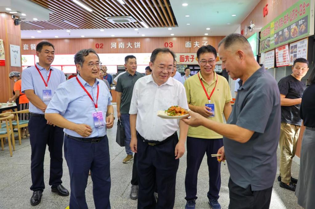 这份温暖的守护,贯穿迎新全天的每一个环节。学工人员快步穿梭于各环节间,高效协调安排;安保人员整齐列队,在校园中巡逻保障安全;食堂档口“火力全开”,用心保障新生吃好入校第一顿饭。校领导带队深入迎新现场,亲切慰问学生与家长,并送上满载关怀的“迎新礼包”。“希望你们把湖科当成家,在这里安心学习、快乐成长”,一句真诚的叮嘱,让许多初次离家的新生倍感踏实。