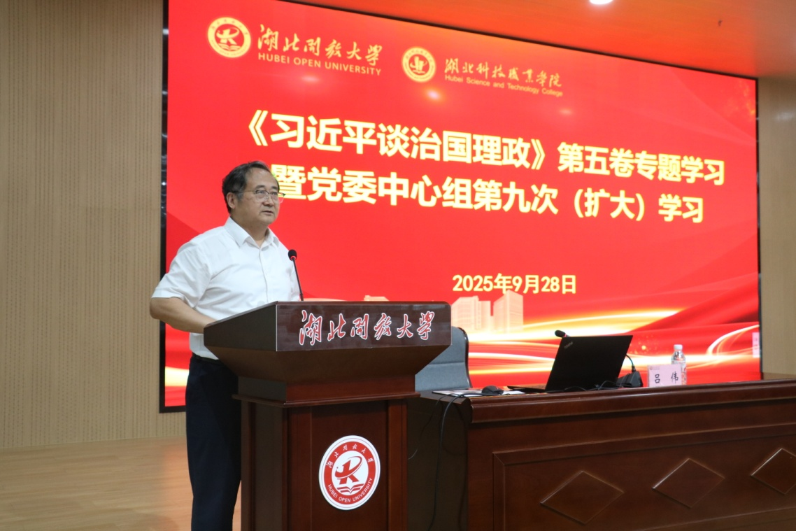 三要在“融入实践学” 上务求实效。要坚持学用结合、知行合一,把学习成果切实转化为推动学校事业发展的实际行动。一方面,要紧扣湖北“建成中部地区崛起重要战略支点” 的目标,深化产教融合与校企合作,围绕中国式现代化对人才的需求优化育人体系,不断提升人才培养质量与社会服务能力,让学校办学更贴合区域发展大局;另一方面,要严格对照学习要求,将《习近平谈治国理政》第五卷蕴含的党的创新理论,贯穿于学校办学治校各环节,落实到教育教学、管理服务、队伍建设等具体工作中。