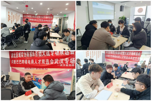 本网讯(通讯员 李智/文 熊韵坚/图)为进一步推动毕业生就业工作, 帮助学生拓宽就业渠道,加强校企合作,2月26日,工商管理学院在阿里巴巴武汉分公司开展了跨境电商人才线下双选会。武汉鹏旭贸易有限公司、武汉明合瑞海实业有限公司等多家本地企业参会,提供了外贸业务员、外贸助理、阿里巴巴国际站运营等岗位受邀参加。工商管理学院副院长秦琴、跨境电商方向负责人与辅导员带领2020级电子商务专业学生参加了此次活动。