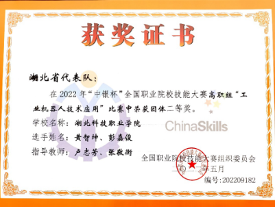 黄志坤、彭家俊是2020级工业机器人技术的学生,他们获得了2022年全国职业院校技能大赛高职组工业机器人技术应用赛项二等奖,他们说:“卢志芳老师上课经常用一些小案例来激发我们对实训的兴趣,并让我们独立完成相应的实训任务,我们一点一点的从里面获得成就感,激发了我们对本专业内容的学习热情。我们专业的学习内容与大赛息息相关,平时课程内容夯实了大赛的基础。卢志芳老师经常对我们进行思想上的鼓励,在一起探讨正确的人生规划,如指向标一般,把我们指向正确的人生道路,让我们不再彷徨,不再迷茫,让我们对大赛有了努力的动力,告诉我们坚持到底,脚踏实地就一定有回报。”
