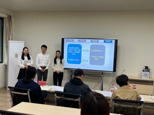 4月14日上午,参赛团队分三个小组进行了现场讲解及随机提问答辩环节。现场讲解展示环节参赛选手分别讲解教学设计、模拟实际教学和教学实施报告内容。教师们准备充分,演示讲解流程规范,现场答辩机智灵活,充分展示了扎实的教学基本功和良好的精神风貌,得到了评委们的高度赞扬。