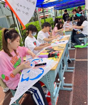 参与活动的学生首先通过随机抽签的方式回答了我国从古至今与风筝相关的文化、节日以及发明等问题,回答正确即可领取“空白”风筝在规定时间内进行主题创作。趣味答题增加了学生对我国风筝以及传统文化的认识,可谓是一场精彩的头脑风暴。