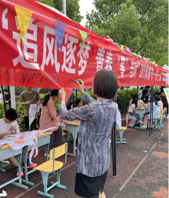 学生们纷纷发挥奇思妙想,希望绘出一个独特的风筝。有的学生为了保证绘画质量,耐心地用铅笔打稿;有的学生为了保证绘画的层次性,将颜料进行各种“排列组合”;还有的学生在风筝上题字,给风筝增加诗意……在一涂一抹中,大家不仅绘成了风筝,也绘出了好心情。短短的几个小时内,学生们卸下压力,将心思聚焦于手中的风筝和缤纷的色彩中,专注而快乐,原本单调的风筝都穿上了美丽的“花衣”。