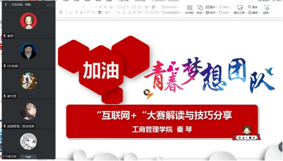 此次线上分享会的召开,拉开了工商管理学院“互联网+”大学生创新创业大赛的序幕,为参赛学生参加比赛提供了宝贵的经验,明确了方向。该赛事全面推进素质教育,切实提高学生的创新精神、创业意识和创新创业能力,以赛促学,培养创新创业生力军。