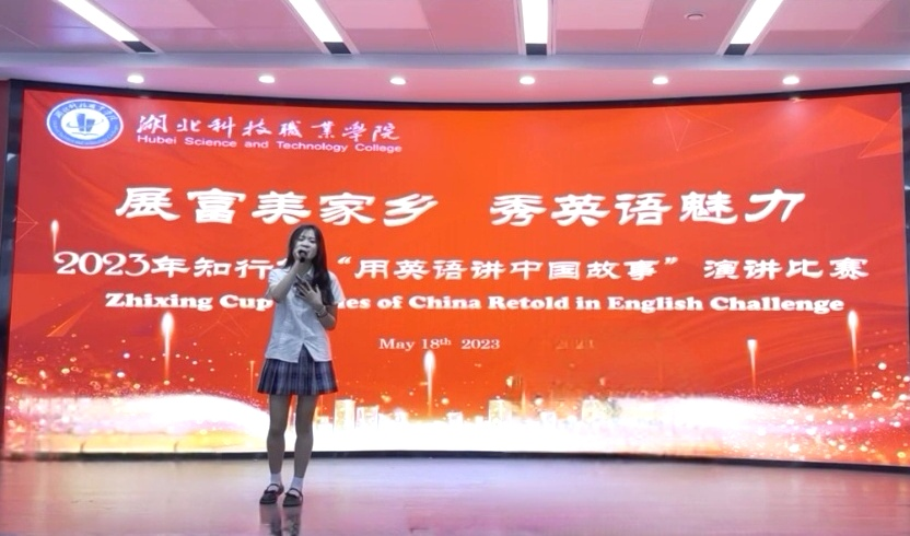 本网讯(通讯员 陈玲 文/图)5月18日下午,由马克思主义学院、公共课教学部组织的2023年知行杯“用英语讲中国故事”演讲比赛决赛在思想政治理论课体验式教学中心举行。经过初赛顺利入围决赛的23名选手汇聚一堂,同台竞技,用视频展示、英语演讲和文艺汇演的形式向现场观众呈现了一场别开生面的视听盛宴。职院教务处和各学院负责人现场参加了活动,初赛选手和学校英语爱好者共同观摩了赛事。