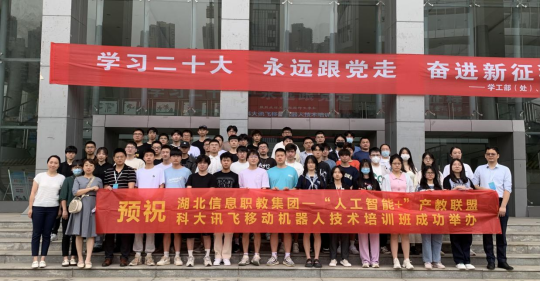 本网讯(通讯员 伍辉 朱珺/文 刘雪琴/图)5月19日至21日,“科大讯飞移动机器人技术培训”在华体网页版_华体(中国)举办。本次培训由科大讯飞(苏州)科技有限公司主办,华体网页版_华体(中国)电信工程学院、湖北省信息技术职教集团”人工智能+“产教联盟承办。来自湖南大学、长江大学、陕西国防工业职业技术学院、九江学院等高校的六十余名师生参加了此次培训。开班仪式上讯飞企业华中区咨询总监丁晓磊、电信工程学院副院长朱珺致辞,分别介绍了讯飞在移动机器人领域的研究成果、对参训师生表示了热烈欢迎。