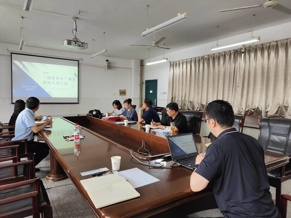 本网讯(通讯员 程夏静 文/图)为进一步推进“课堂革命”典型案例遴选工作,总结凝练学校教师在课堂改革方面的优秀做法和典型经验,全面提升学校办学水平与人才培养质量,5月30日,学校召开2023年“课堂革命”典型案例培育项目评议会。会议邀请了武汉工程大学教务处副处长周德红教授、学校专职督导员雷学平教授、张玉峰教授、赵祖辉教授、夏芳教授担任评审专家,管评中心全体职工参会。