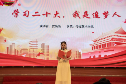 2022级传媒艺术学院人物形象专业的皮焕焕以“学习二十大 我是追梦人”为主题,分享了她对梦想的理解解读,也结合张桂梅校长、钟南山院士等事迹为例,引发我辈思考、激励青年奋斗。结合习近平总书记“青年兴则国家兴,青年强则国家强”的讲话内容,向同学们阐释了梦想的力量。
