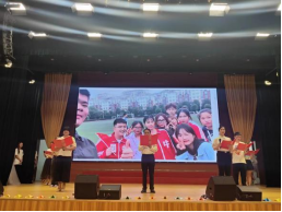 “风浪再大,我也会勇往直前……”在报告厅的毕业汇演上,学院领导和毕业班辅导员为本届毕业生们献上了自己的祝福:朗诵《青春的赞歌》和歌舞《青春纪念册》,精彩的演出和大屏幕上不断滚动的照片,为同学们送上最美好的祝愿,让这份回忆成为每位毕业生的“独家记忆”。