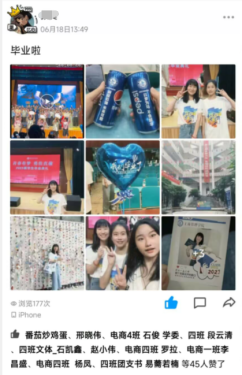 除了细致的服务,各色“私人订制”的毕业礼物也被同学们纷纷点赞。从学校定制的帆布袋、文化衫、可乐和点心礼包到学院定制的毕业寄语书签,再到毕业班辅导员们“别出心裁”为同学们准备的鲜花、手写明信片和“幸运抽奖”,让毕业生们实名表白学校和老师。