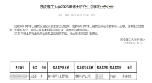 王还喜博士研究生录取公示名单