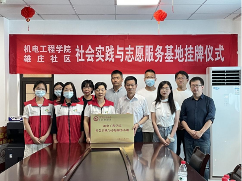 本网讯(通讯员 杨涵宇/文 周良/图)为提升人才培养质量,培养大学生社会实践技能,6月下旬,机电工程学院社会实践与志愿服务基地挂牌仪式在东湖高新区雄庄社区举行。学院党总支书记赵清泉、副院长汪超、社区书记熊金莲、主任王群秀等社区工作人员代表和学院全体学工人员参加仪式。