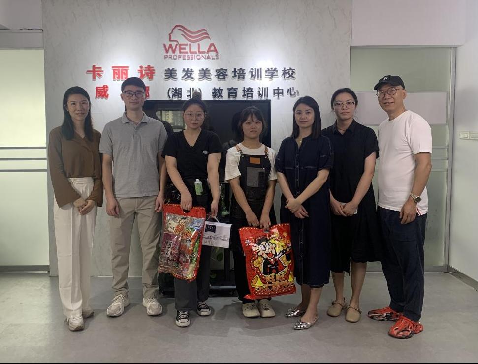 9月11日上午,传媒艺术学院党总支副书记熊雯婧,专业负责人以及相关辅导员来到湖北卡丽诗美发美容培训中心看望备赛的学生。熊雯婧关心问候了两位备赛学生,了解他们目前备赛情况,对同学们在暑假期间一直积极备赛表示认可,特别是对2023级新生王婷“人未报到、学习先行”的学习和钻研精神表示高度赞赏。