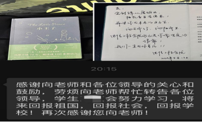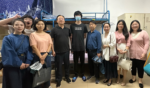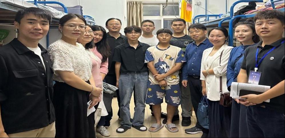 学院新生中,有全校最高的学生王皓越,有一直被社会救助的英雄(化名)。走访中,老师们一方面了解学生住宿及适应情况;另一方面,帮助特困学生解决学费、住宿费、生活费等实际问题,并鼓励同学向光而行,向阳生长。“生活中无论有什么困难,尽管向我们反应,电信工程学院永远是你们的坚实后盾。”党总支书记谢永平亲切的话语一下拉近了与新生们的距离。学生英雄(化名)难掩感动之情,以短信的形式说道:“感谢各位领导的关心鼓励,我一定会努力学习,将来回报祖国,回报社会,回报学校!”