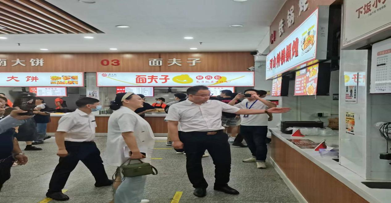 本网讯(通讯员 牛苏杭 文/图)9月14日上午,武汉市食品安全“两个责任”包保督导组来校督查新学期食品安全工作,后勤服务集团副总经理韩静陪同检查。