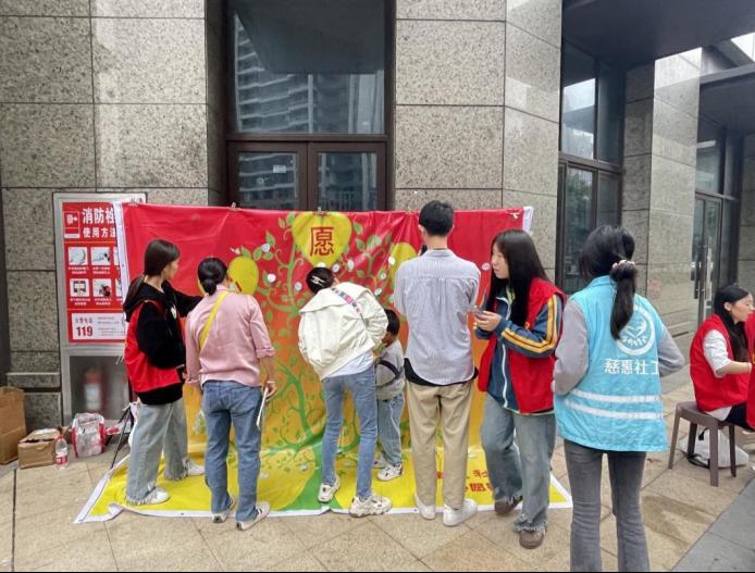 社区居民在心愿墙写下对美好生活的祝愿
