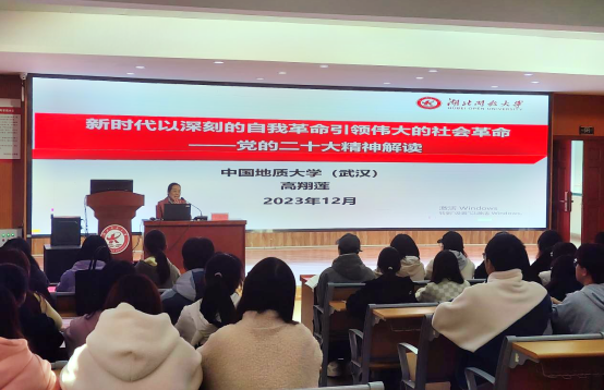 本网讯(通讯员 梁燕妮 文/图)12月8日下午,中国地质大学(武汉)高翔莲教授做客“红色大讲堂”,为华体网页版_华体(中国)师生开展主题讲座。湖北开放大学体系师生,通过线上线下形式同步参加了此次活动。
