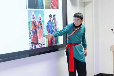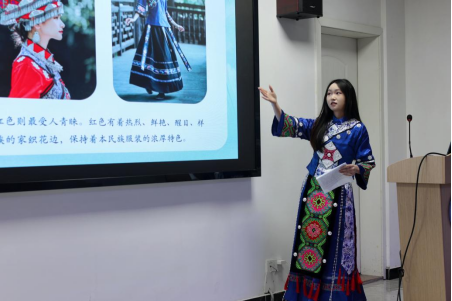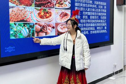 文化展示环节,学院少数民族学生化身家乡“代言人”,通过图片、视频、实物等多样化的形式展现各自家乡的风土人情:蒙古族历史悠久的那达慕大会、土家族节奏明快的“摆手舞”、维吾尔族的特色美食抓饭和烤包子……为在场的每一位“小小石榴籽”奉献了一场民族文化盛宴。