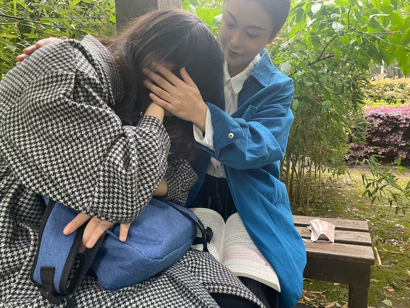 “江老师”曾是一名心理高关怀学生,因家庭矛盾陷入情绪崩溃,甚至想要轻生。我第一时间找到她,对她进行安抚、疏导,直到她情绪稳定安然入睡,我才放下心来。