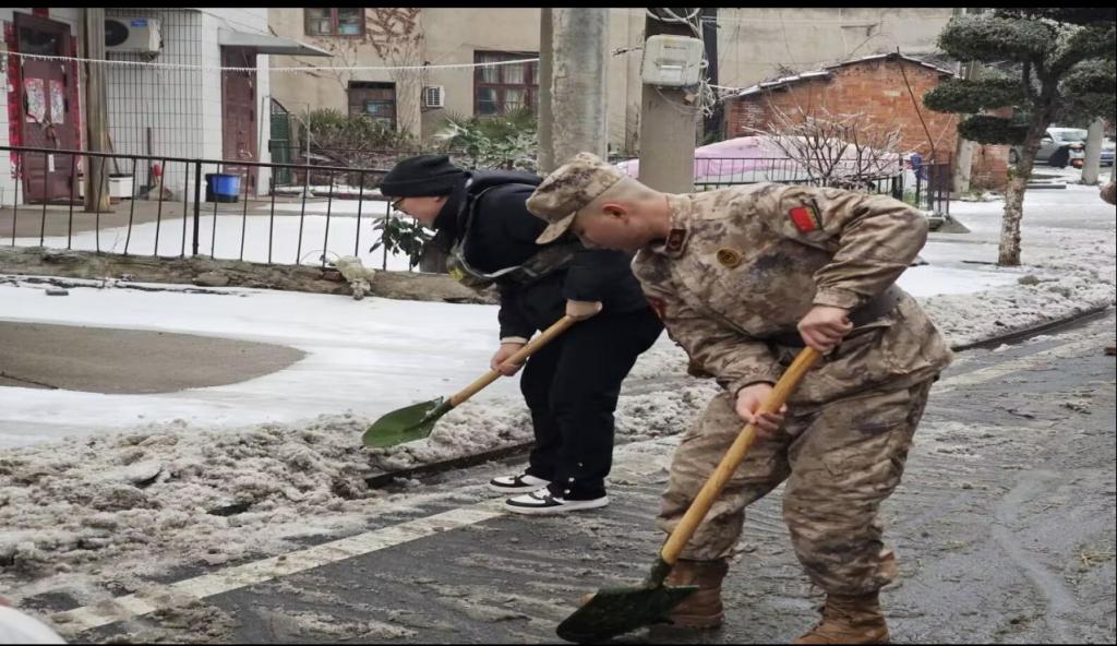 2021级软件技术2班的姜正宇同学即将毕业,他自幼心系军营,一直有参军报国的梦想。在校学习期间,他慢慢了解到,参军不只是一种荣耀,更是一种责任和义务,尤其是看到人民子弟兵在抢险救灾面前不畏生死、冲锋在前的身影,他的参军梦更加强烈。寒假期间,在蔡甸区人武部协助征兵工作的姜正宇,果断响应民兵紧急出动的号召,上街执行铲雪除冰的任务。2月22日一大早,他主动加入民兵应急队伍,与同志们一起顶着寒风、冲锋在前,用铁锹、雪铲、扫帚等清雪工具,清理冻雨下结冰的路面,有条不紊、干劲十足,为“破冰行动”作出表率。姜正宇说:“虽然我还没有成为一名正式的新兵,但我始终以一名军人的标准严格要求自己,为大众排忧解难,用热情融化积雪,以行动践行使命。”