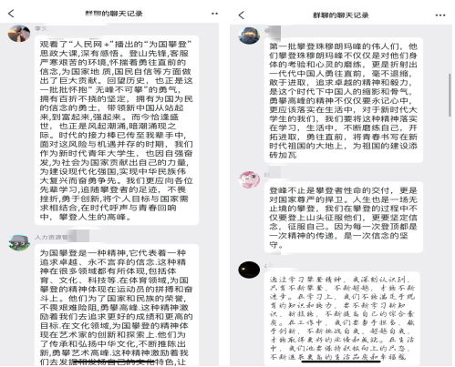 课程学习结束后,各学院以主题班会、组会等线上线下相结合的形式组织学生围绕攀登精神展开热烈讨论,畅谈学习心得体会。同学们纷纷表示受益匪浅,未来他们将以攀登精神为引领,以坚持不懈、持久发力、久久为功的学习生活态度在成长道路上勤于奋进、勇于攀登、敢于超越,以青春之我、奋斗之我为实现中华民族伟大复兴贡献青春力量。