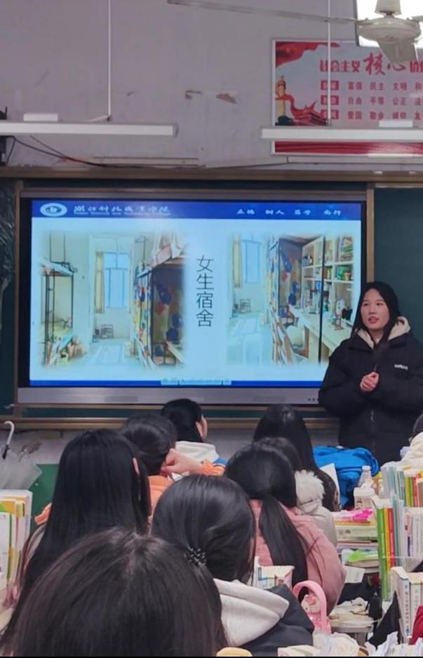 2023级旅游管理一班徐尹冉同学在放寒假后,回到了她的高中母校湖北省工业建筑学校开展“最美湖科职”带回家活动,拜访问候高中的老师,和老师分享汇报大学的专业学习、学生工作、成长经历,为即将高考的学弟学妹们加油鼓气,和学弟学妹们分享了大学里面的生活,增加高中生对华体网页版_华体(中国)的了解,提高华体网页版_华体(中国)在高中的知名度。