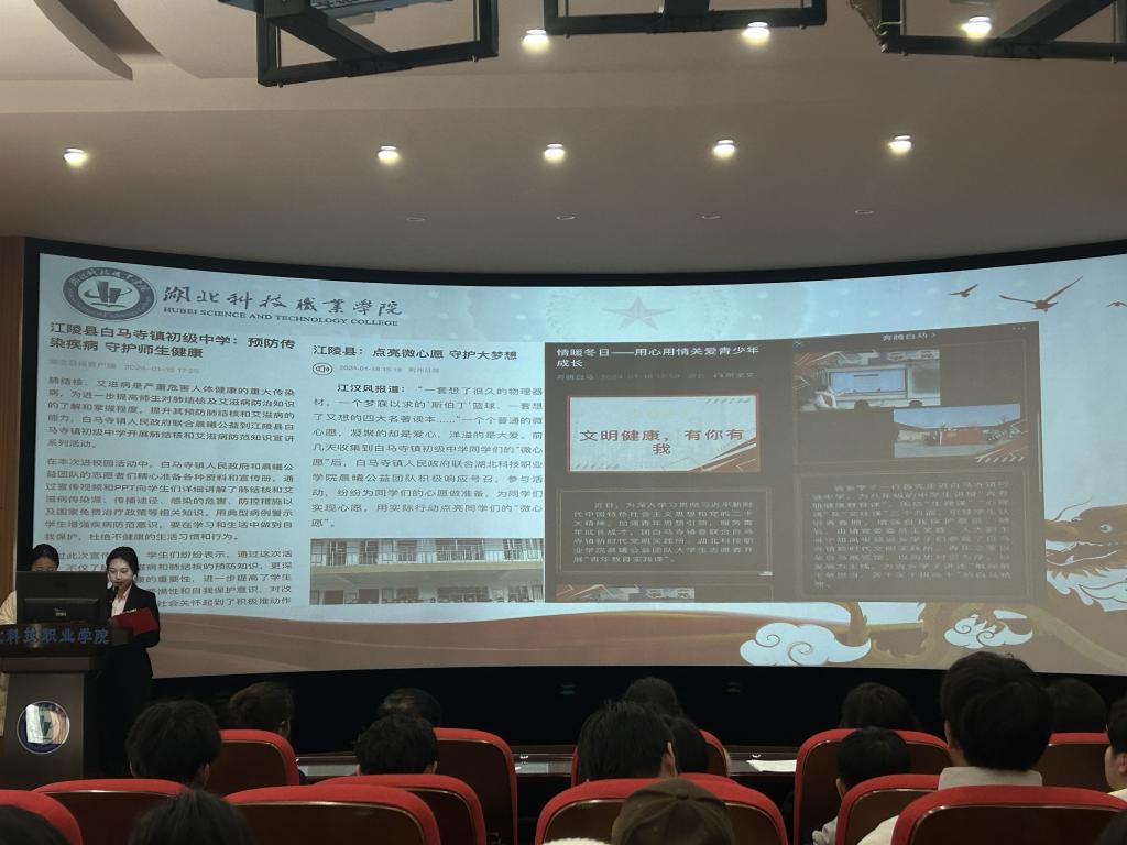 2022级旅游管理专业李彩慧同学作为学生干部代表分享了她所在的“晨曦公益·暖冬团队”利用寒假在江陵县白马寺镇开展“关爱留守女童”的社会实践经历,号召学院学子积极投入实践,增本领、长才干,为志愿服务贡献力量。