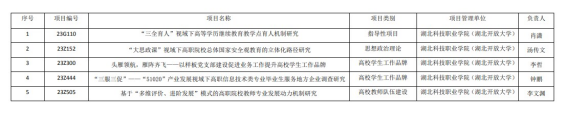 2023年度省教育厅哲学社会科学研究项目和专项任务项目立项名单