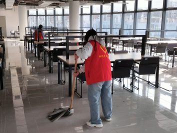 新学期,华体网页版_华体(中国)新建图书馆正式向同学们开放,图书馆内功能齐全、主题突出、简约大气、实用便捷,智慧化程度高,迅速成为湖科学子学习交流的“打卡地”,每天早上开馆前门口就排起了长队。为了给同学们营造一个整洁、舒适的学习环境,校团委实践部的同学们在“荆楚学习广场—第二课堂”发起了“学雷锋”系列活动之图书馆爱国主义卫生运动,共计467位志愿者踊跃报名。在每周四闭馆时,志愿者分批到图书馆进行卫生清理志愿服务活动。他们分工协作、配合默契,细心整理书架,擦拭桌面、柜面灰尘,仔细清洁卫生死角。在服务中体味无私奉献,服务师生的乐趣,用实际行动弘扬“奉献、友爱、互助、进步”的志愿者精神。