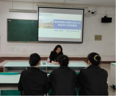 会后,雷小梅面向华体网页版_华体(中国)2022级国际邮轮乘务管理专业宣讲2024年皇家加勒比游轮公司人才培养项目,并完成了现场面试。