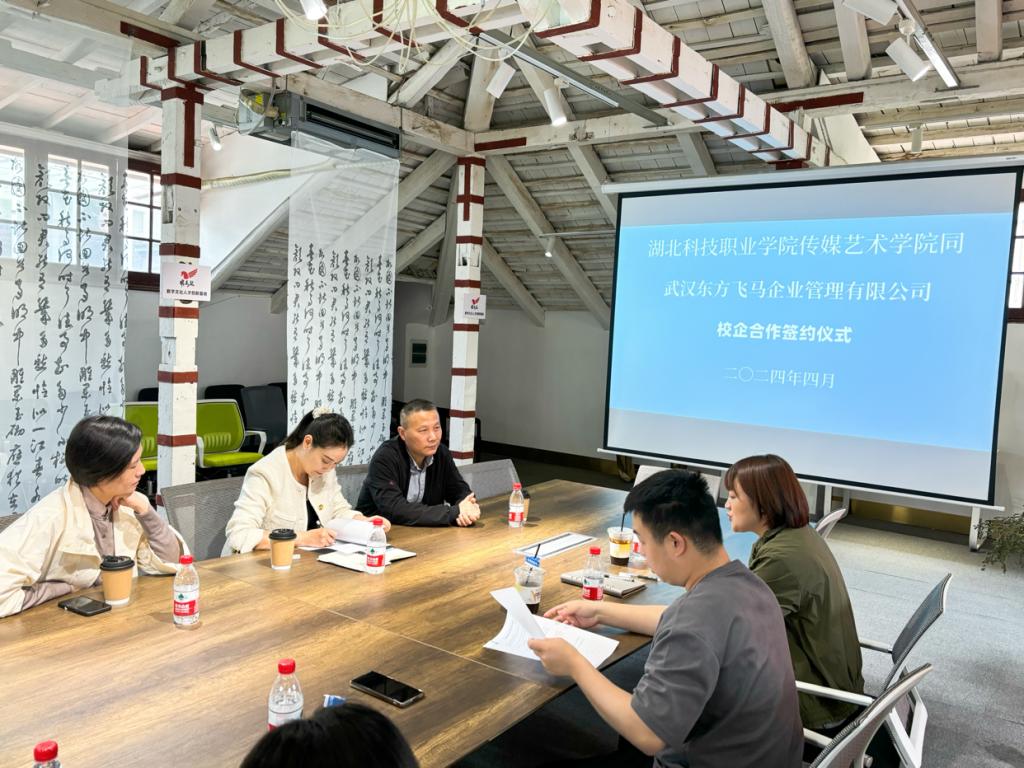 本网讯(通讯员 陈静 文/图)4月14日,华体网页版_华体(中国)传媒艺术学院院长刘福元一行赴武汉东方飞马有限公司,双方达成校企合作战略合作意向,共同打造黎黄陂路文创暨数字文化人才创新基地,搭建艺术设计专业的深度发展与学生实战实训平台。