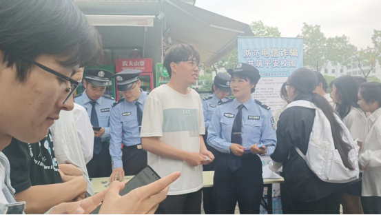警官们现场发放宣传资料,结合近期高校电信网络诈骗真实案例,向同学们讲解不法分子常用的诈骗手段,告诫同学们在日常学习生活中要提高警惕,特别是网购、社交、支付等场景中,要使用正规交易平台,不要随意点击陌生链接,慎用不熟悉的APP或者小程序,切记保护好个人信息。遇到各种形式的骗局,要做到不轻信、不理睬、不转账、不汇款,谨记“给钱不要,要钱不给”的警方忠告。